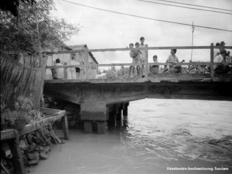Cầu Cái Cá những năm 90 ( đứng trên cầu nhìn về hướng bến phà Hàm Luông )
