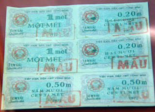 Và mỗi loại tem phiếu lại ghi rõ số lượng hàng hóa có thể được mua, như 0,2 – 0,5 – 1 mét vải.
