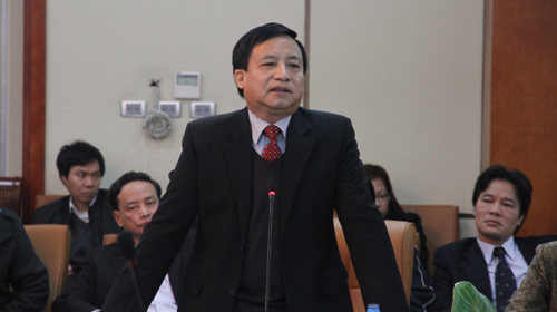Phó Chủ tịch Hội Nông dân VN Nguyễn Duy Lượng phát biểu tại buổi làm việc về vụ thu hồi đất ở xã Vinh Quang, huyện Tiên Lãng (Hải Phòng) ngày 10/2. Ảnh: Đức Tám (TTXVN)