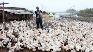 Chủ đầm Dũng bên khu đầm 2,6 ha ở huyện Tiên Lãng (Hải Phòng) không dám đầu tư nuôi trồng gì nữa mà chỉ thả vịt để nuôi sống gia đình – Ảnh: Việt Dũng (TTO) [Ngày 17/1/2012]