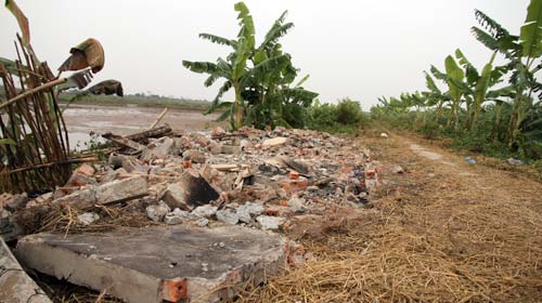 Ngôi nhà của ông Vươn sau khi bị phá sập – Ảnh: H.H. – N.H.K.(TTO)