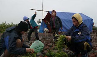 Năm 2008, huyện Tiên Lãng thu hồi 25,3ha trên tổng số 30ha đất nuôi trồng thủy sản đã giao cho ông Lương Văn Trong từ năm 1992 và “cấm” gia đình đầu tư tiếp. gia đình ông Trong cố bám trụ bằng cách vớt rong bán kiếm sống qua ngày – Ảnh: X.LONG (TTO) [Ngày 3/2/2012]