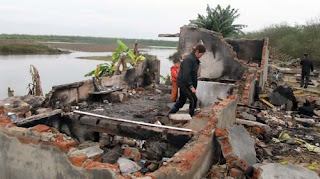 Ngôi nhà của ông Vươn sau khi bị phá sập – Ảnh: H.H. – N.H.K.(TTO)