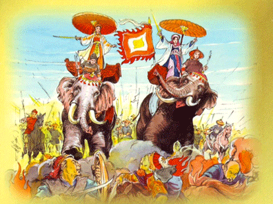 Viết về một giai đoạn lịch sử hào hùng của dân tộc (năm 40 – 43) gắn với tên tuổi Hai Bà Trưng lừng lẫy nhưng SGK không hề dám nửa lời chỉ đích danh bọn xâm lược. Thậm chí cụm từ có tính hàm ngôn “phương Bắc” sách cũng không dám đặt sau cụm từ “kẻ thù”. Vì sao SGK không cho các cháu biết quân giặc nào đã bắt tổ tiên của chúng lên non tìm ngà voi, xuống biển mò ngọc trai, để phải làm mồi cho hùm beo, thuồng luồng, cá sấu?